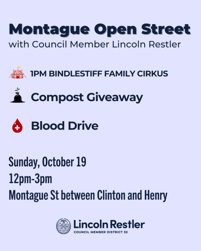 Tuesday, October 21: 84th Precinct Community Council Meeting. 7pm. Brooklyn Borough Hall, 209 Joralemon Street