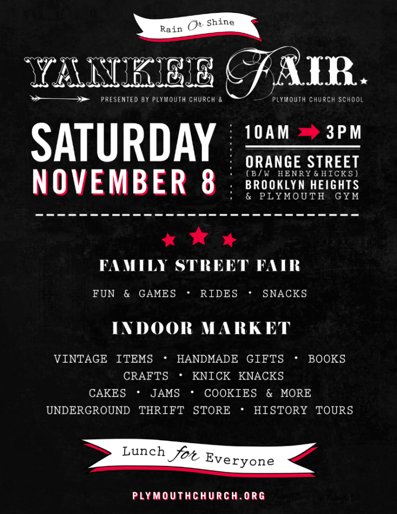 Saturday, November 8: Yankee Fair. Plymouth Church. 10am-3pm