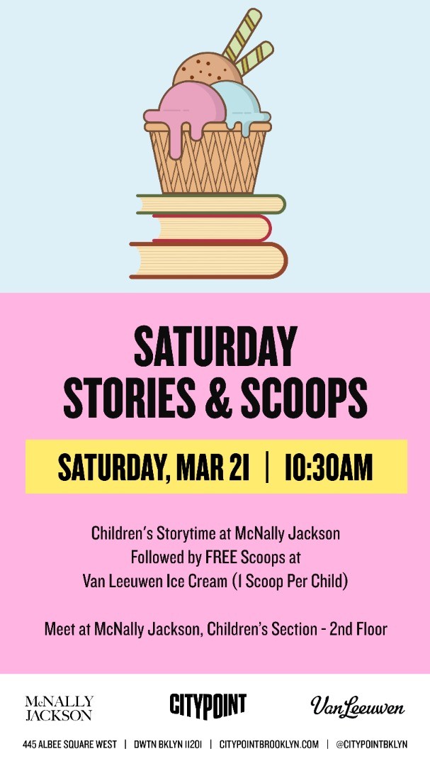 Saturday, March 21. Storytime and Scoops @ CityPoint. 10:30am. See flier above.
