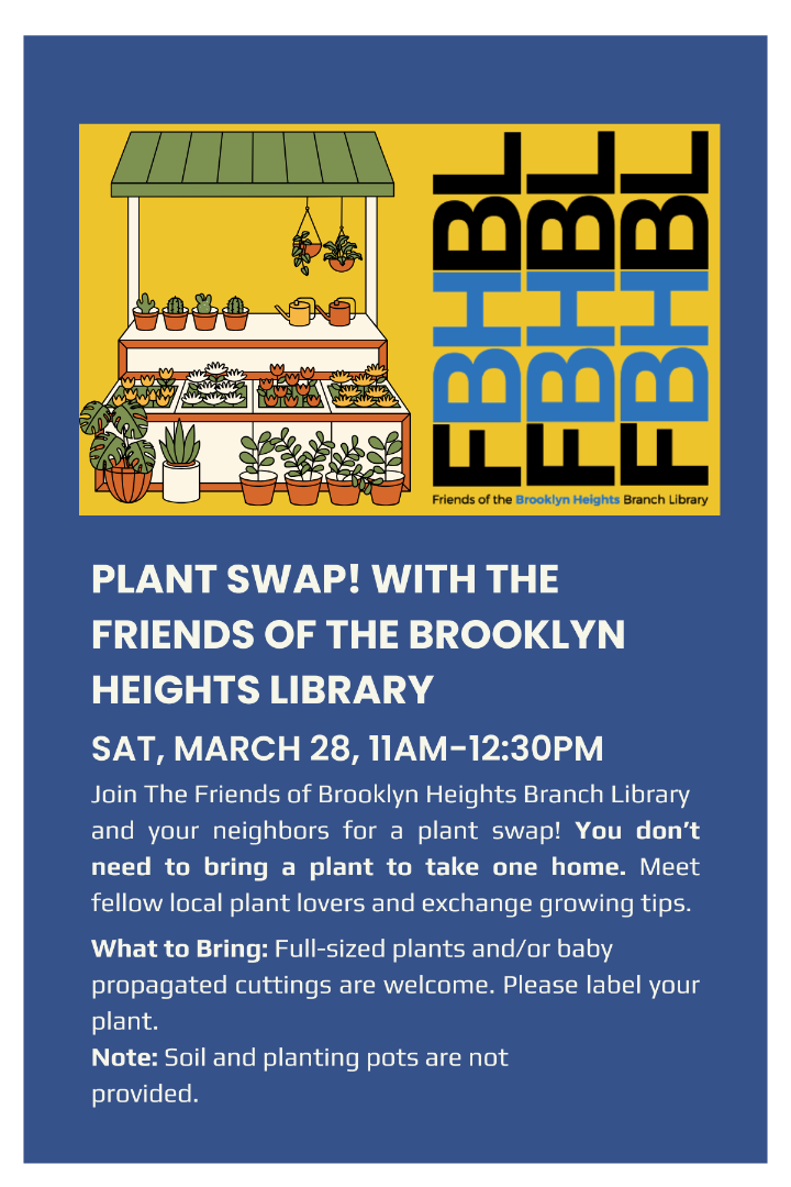 Saturday, March 28. Plant swap at the Brooklyn Heights Library - see details above.