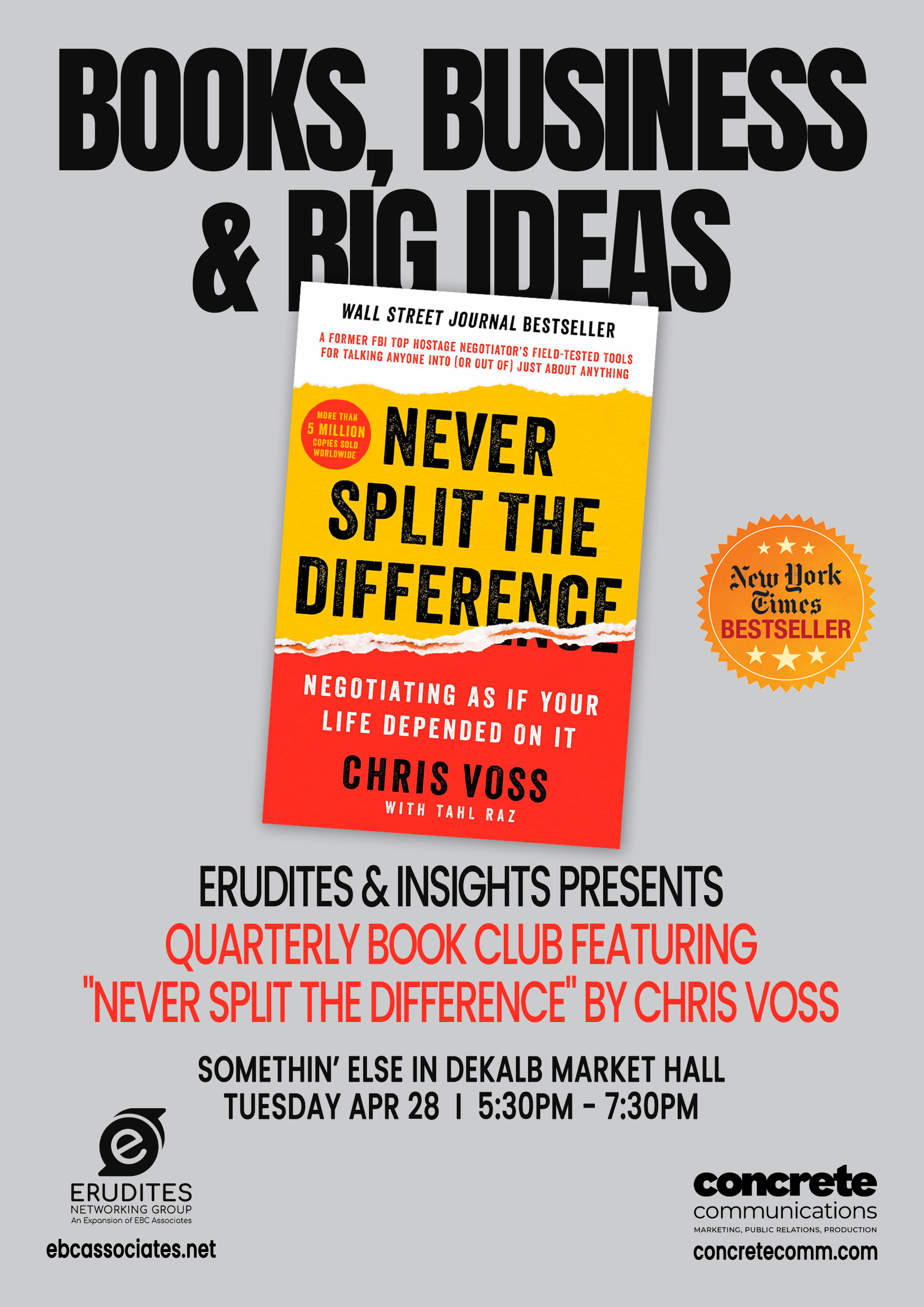 Tuesday, April 28. Books, Business and Big Ideas. City Point. 5:30-7:30pm. See details.
