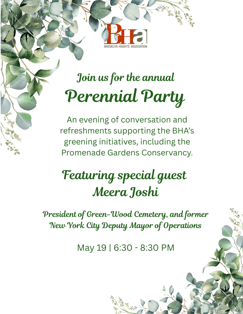 Saturday, May 16. The Longest Table Brooklyn Heights. 12:30-2:30pm. Remsen Street to the Promenade. Registration opens May 1st. Learn More.